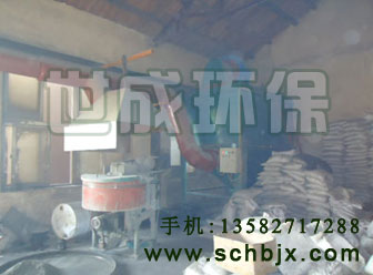 化工廠混料車間在對粉料進行攪拌、混料的時候會有大量粉塵產生,我們采用在加料口上部設計集氣罩的形式進行收塵,起到了很好的收塵效果,解決了車間內環(huán)境污染的問題。